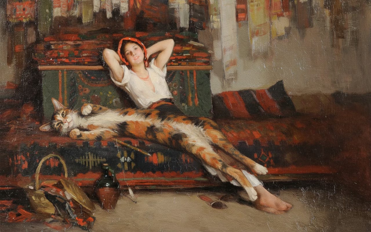 (Picturii lui Nicolae Grigorescu i-am adăugat cu inteligența artificială, o pisică)