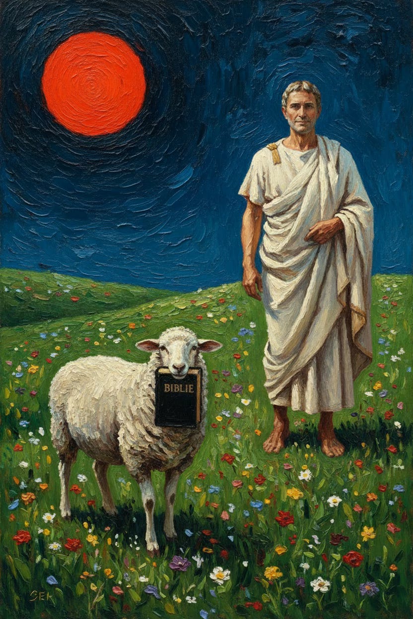 Un bătrân păstor credincios și-a pierdut Biblia preferată, în timp ce căuta un miel rătăcit. Trei săptămâni mai târziu, o oaie s-a apropiat de el ținând Biblia în gură. Păstorul nu-i venea să creadă. A luat cartea din gura oii, a ridicat ochii spre cer și a exclamat: „E un miracol!”